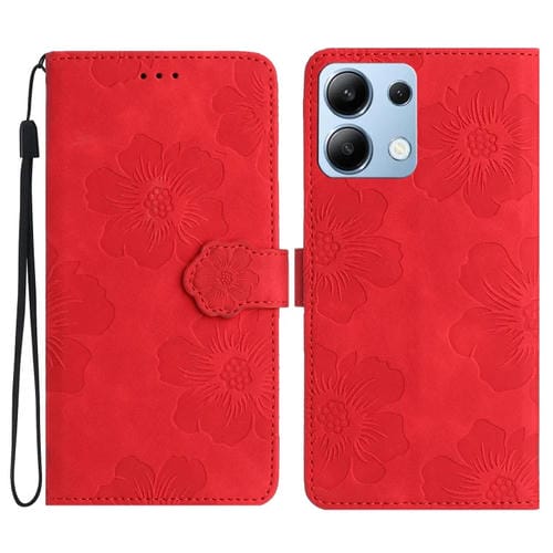 Funda de Cuero con Estampado de Flores En Relieve para Redmi Note 13 4G (Rojo)