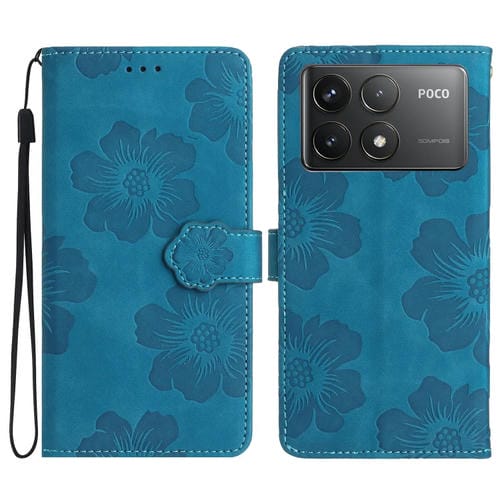 Funda de Cuero con Estampado de Flores En Relieve para Xiaomi Poco F6 Pro (Azul)