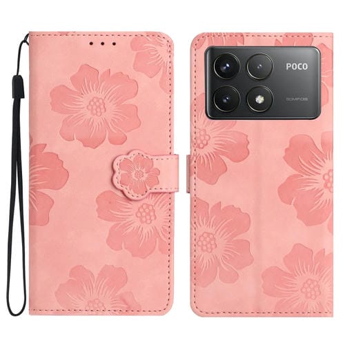 Funda de Cuero con Estampado de Flores En Relieve para Xiaomi Poco F6 Pro (Rosa)