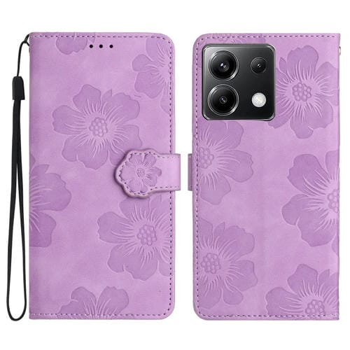 Funda de Cuero con Estampado de Flores En Relieve para Xiaomi Poco X6 (Morado)