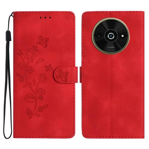 Funda de Cuero con Estampado de Flores y Mariposas para Xiaomi Poco C61 (Rojo)