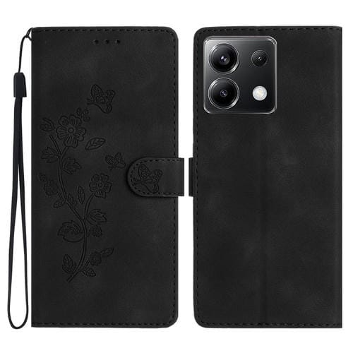 Funda de Cuero con Estampado de Flores y Mariposas para Xiaomi Poco X6 (Negra)