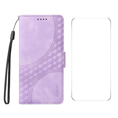 Funda de Cuero con Estampado de Rombos y Estrellas Enkay para Xiaomi Redmi K70 Ultra (Morado)