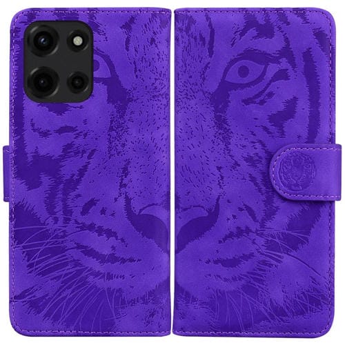 Funda de Cuero con Estampado de Tigre para Motorola Moto G 5G (2025) (Morado)