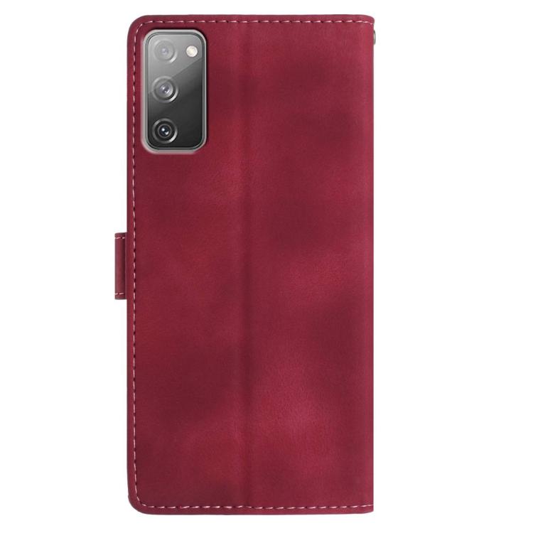 Funda de cuero con estampado floral en relieve para Samsung Galaxy S20 FE 5G (roja)