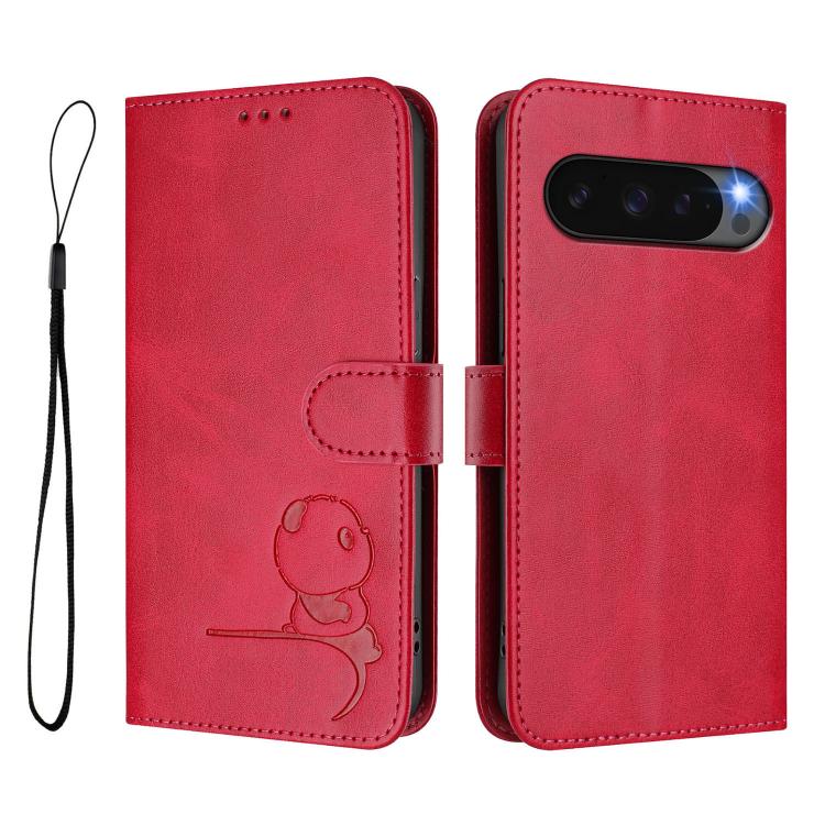 Funda de cuero con estampado RFID y cordón para Google Pixel 9/9 Pro (rosa)