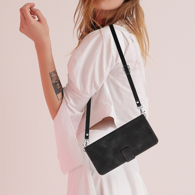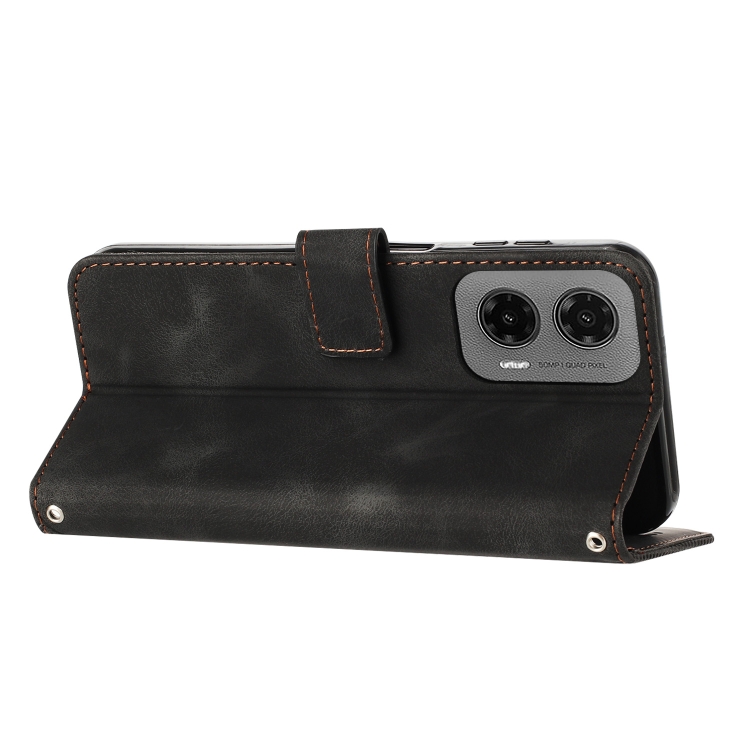 Funda de Cuero Triangular para Motorola Moto G35 Dream con Cordón (Negro)