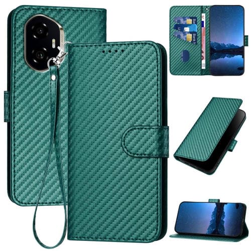 Funda de Cuero con Hebilla de Fibra de Carbono y Cordón para Honor 300 Yx0070 (Verde Oscuro)