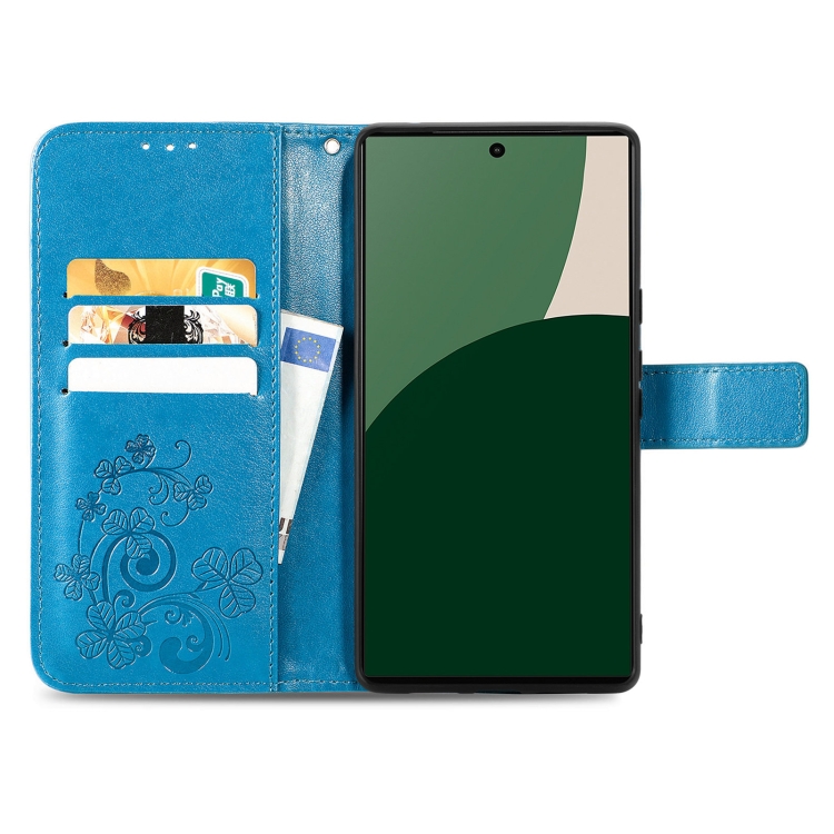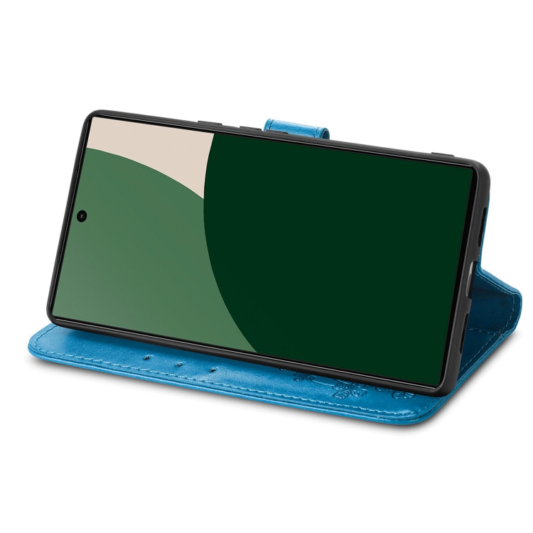 Funda de Cuero para Sharp Aquos R9 con Hebilla en Relieve y Cierre de Cuatro Hojas (Azul)