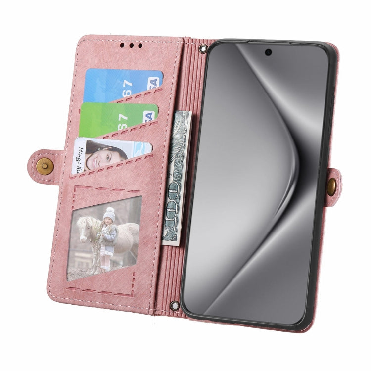- 1x Funda de Cuero con Hebilla Lateral y Cierre Geométrico para Huawei Pura 70 Pro+ (Rosa)