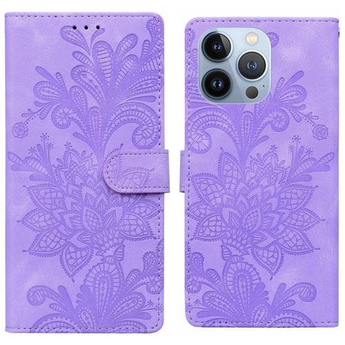 Funda de Cuero con Hebilla Magnética y Diseño Floral En Relieve para iPhone 13 Pro (Morado)