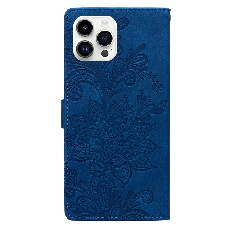 Funda de Cuero con Hebilla Magnética y Encaje Floral En Relieve para iPhone 16 Pro (Azul)