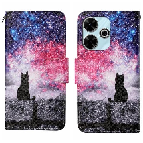 Funda de Cuero con Patrón de Dibujo de Colores para Xiaomi Redmi 13 4G (Gato Estrellado)