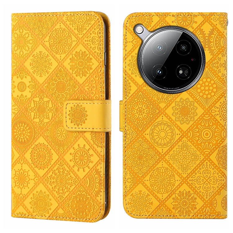 Funda de Cuero con Patrón en Relieve Estilo Étnico para Infinix Zero 40 4G (Amarillo)