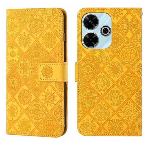 Funda de Cuero con Patrón En Relieve de Estilo Étnico para Redmi 13 4G (Amarillo)