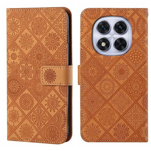 Funda de Cuero con Patrón En Relieve de Estilo Étnico para Redmi Note 14 Pro 5G (Marrón)