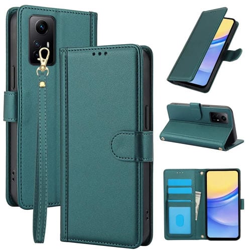 Funda de Cuero con Ranuras para Tarjetas y Tacto de Piel Global para Redmi Note 11 4G/Note 12S 4G con Cordón Doble (Verde)