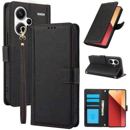 Funda de Cuero con Ranuras para Tarjetas y Tacto de Piel Global para Redmi Note 13 Pro+ 5G con Cordón Doble (Negro)