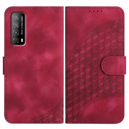 Funda de Cuero Huawei Enjoy 20 Se 4G con Relieve Cabeza de Elefante y Cordón (Rosa Rojo)