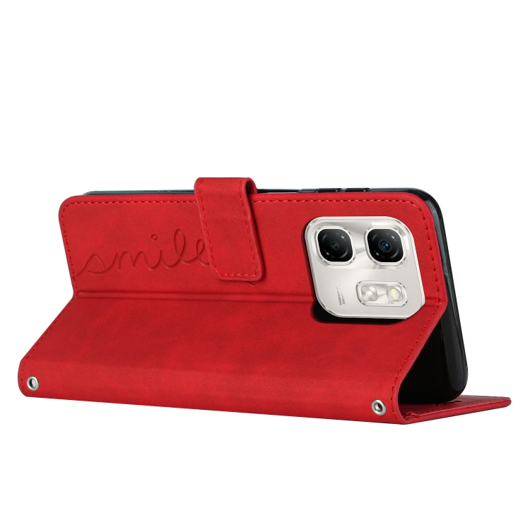 Funda de Cuero con Relieve de Corazón para Infinix Hot 50I con Cordón Largo (Rojo)
