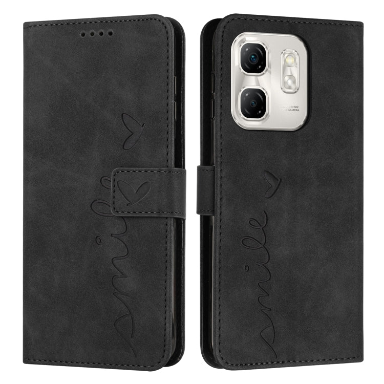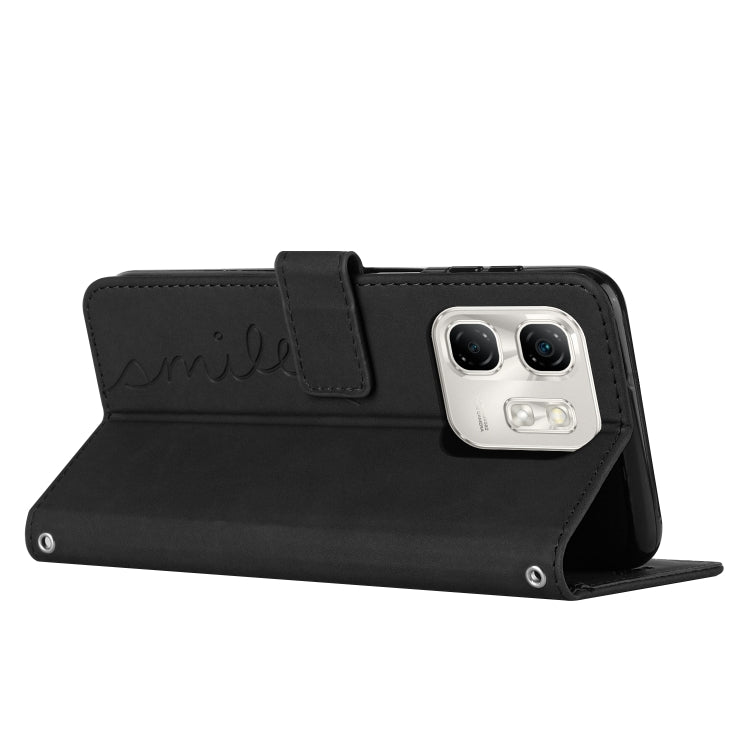 Funda de Cuero con Relieve de Corazón y Cordón Largo para Infinix Hot 50I (Negro)