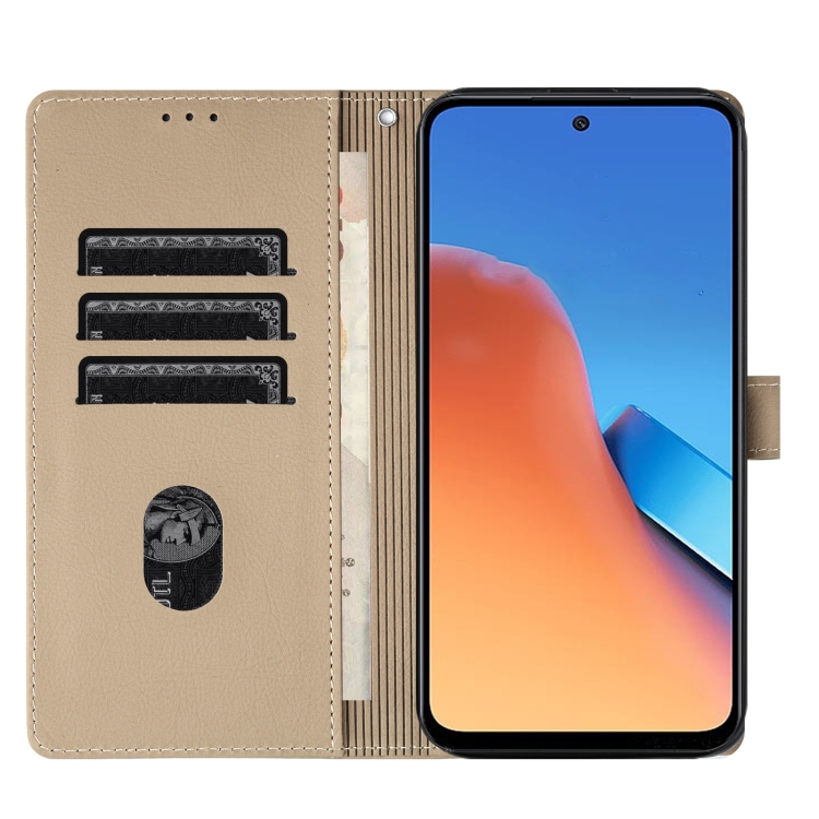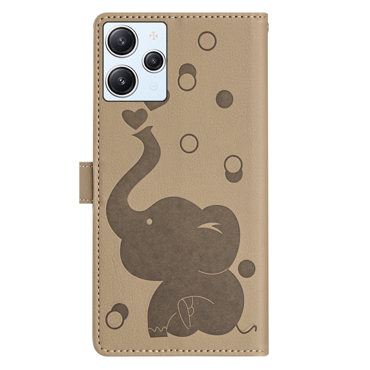 Funda de Cuero con Relieve de Elefante de Dibujos Animados para Redmi 12 4G/5G (Caqui)