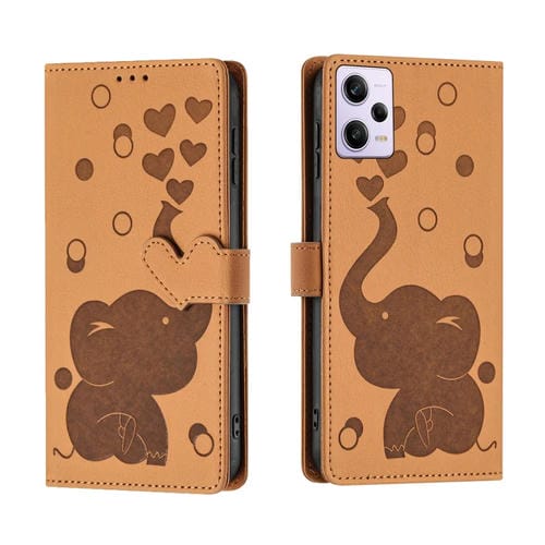 Funda de Cuero con Relieve de Elefante de Dibujos Animados para Redmi Note 12 Pro 5G (Amarillo)
