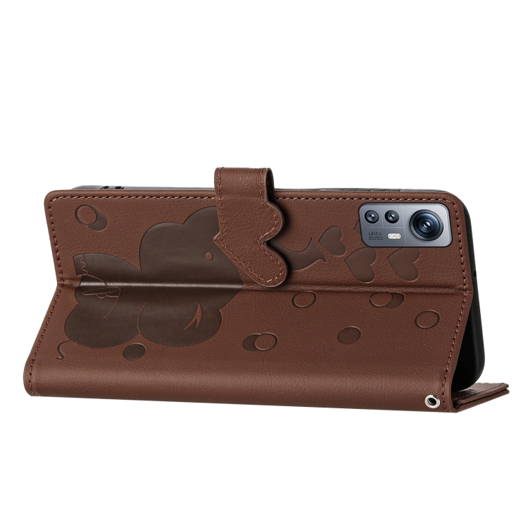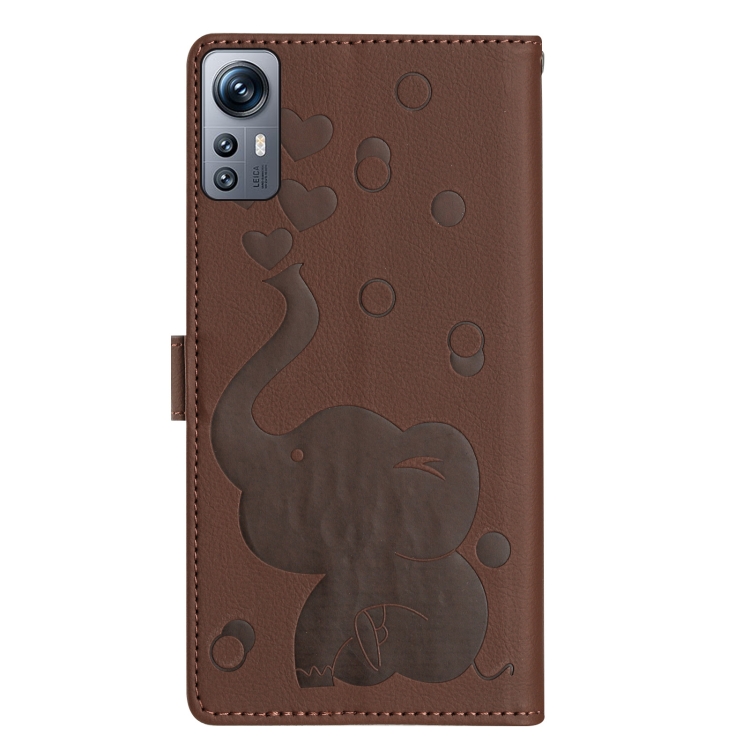 Funda de Cuero con Relieve de Elefante de Dibujos Animados para Redmi Note 12S 4G (Marrón)