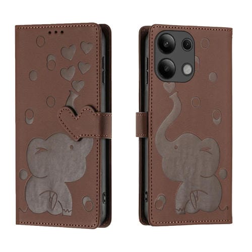 Funda de Cuero con Relieve de Elefante de Dibujos Animados para Redmi Note 13 Pro 4G (Marrón)