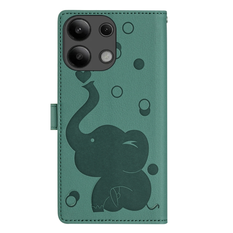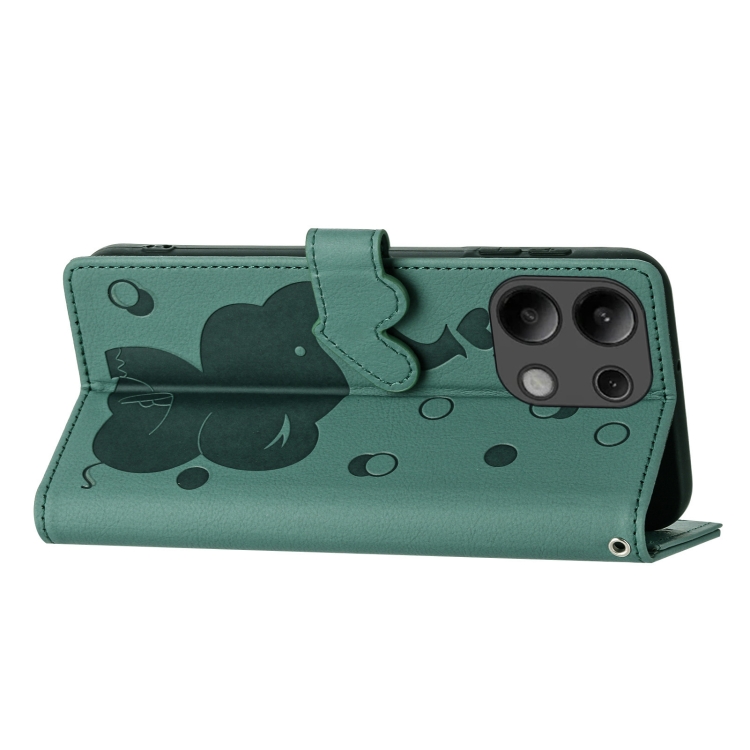 Funda de Cuero con Relieve de Elefante de Dibujos Animados para Redmi Note 13 Pro 4G (Verde)