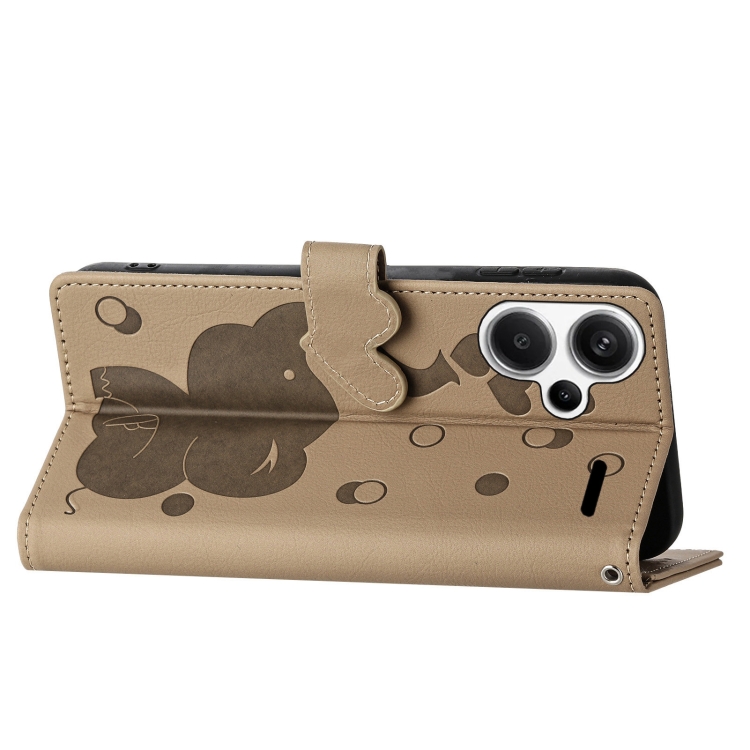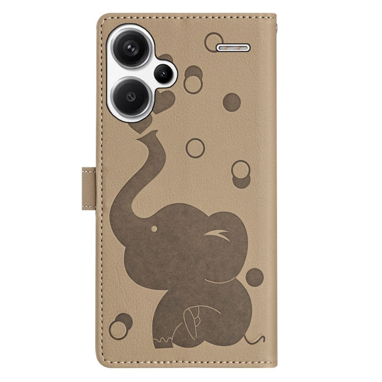 Funda de Cuero con Relieve de Elefante de Dibujos Animados para Redmi Note 13 Pro+ (Caqui)