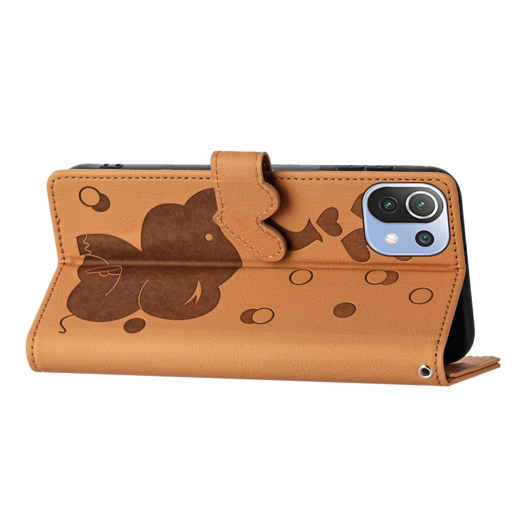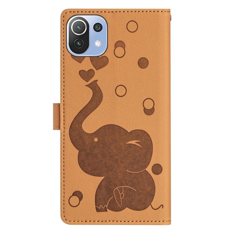 Funda de Cuero con Relieve de Elefante de Dibujos Animados para Xiaomi Mi 11 Lite (Amarillo)