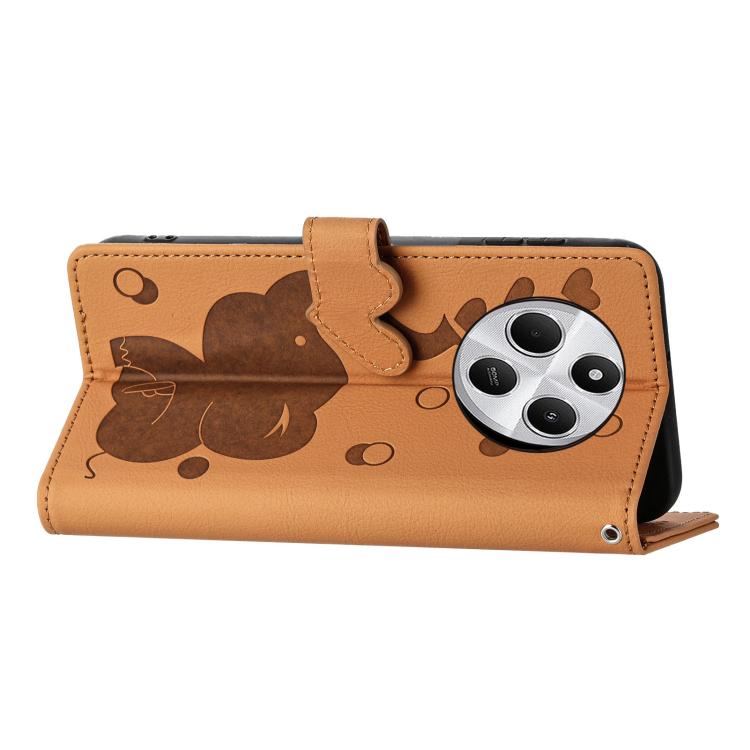 Funda de Cuero con Relieve de Elefante de Dibujos Animados para Xiaomi Poco C75 (Amarillo)