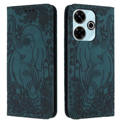 Funda de Cuero con Relieve de Elefante Retro para Xiaomi Redmi 13 4G (Verde)