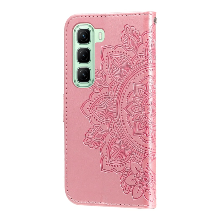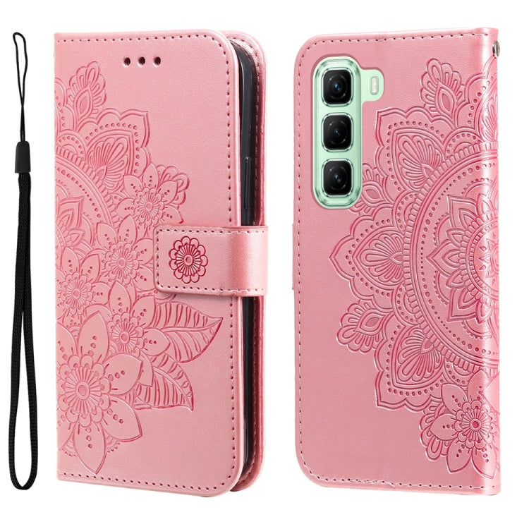 Funda de Cuero con Relieve Flores Siete Pétalos para Infinix Hot 50 5G (Oro Rosa)