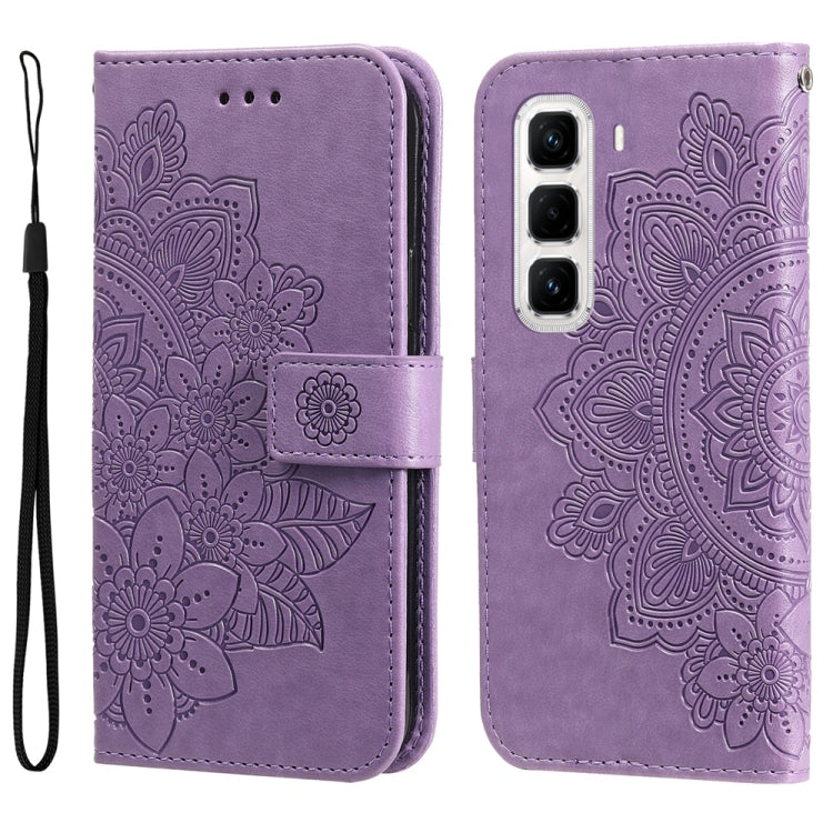 Funda de Cuero con Relieve Flores de Siete Pétalos para Infinix Hot 50 Pro+ 4G (Morado Claro)