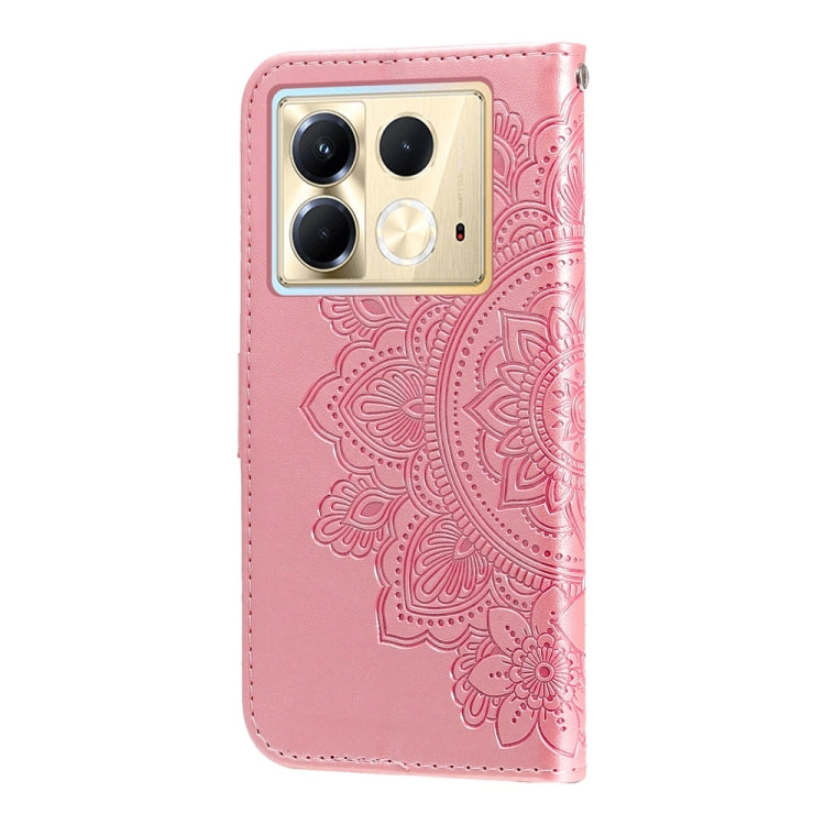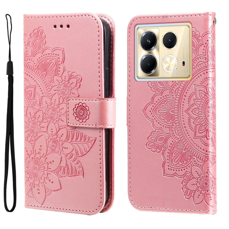 Funda de Cuero con Relieve de Flores de Siete Pétalos para Infinix Note 40 5G (Oro Rosa)