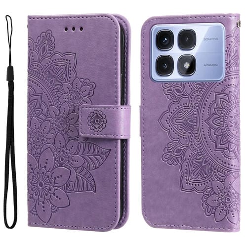 Funda de Cuero con Relieve de Flores de Siete Pétalos para Redmi K70 Ultra (Morado Claro)