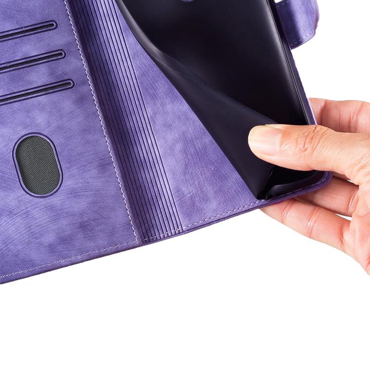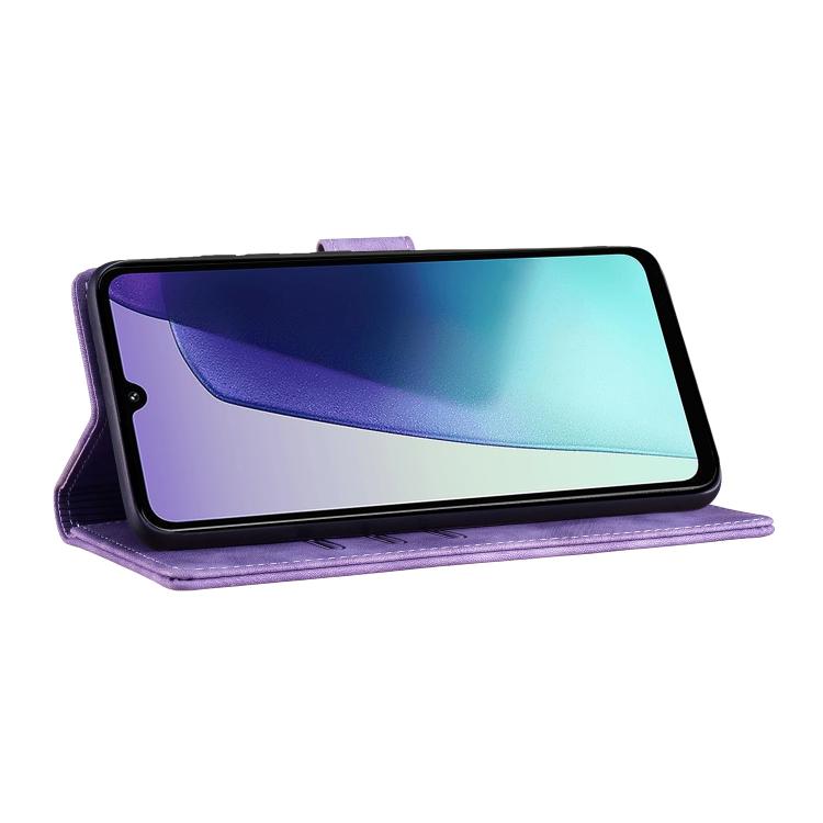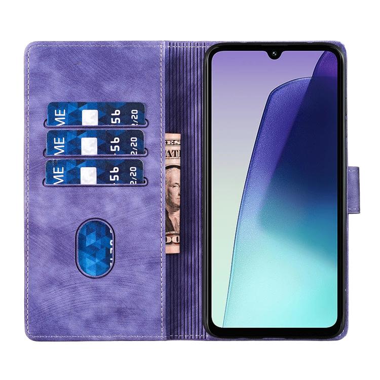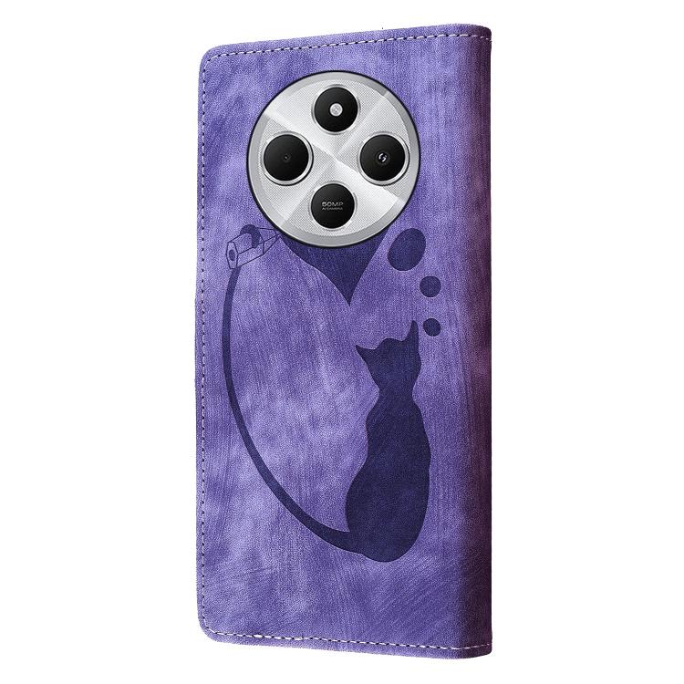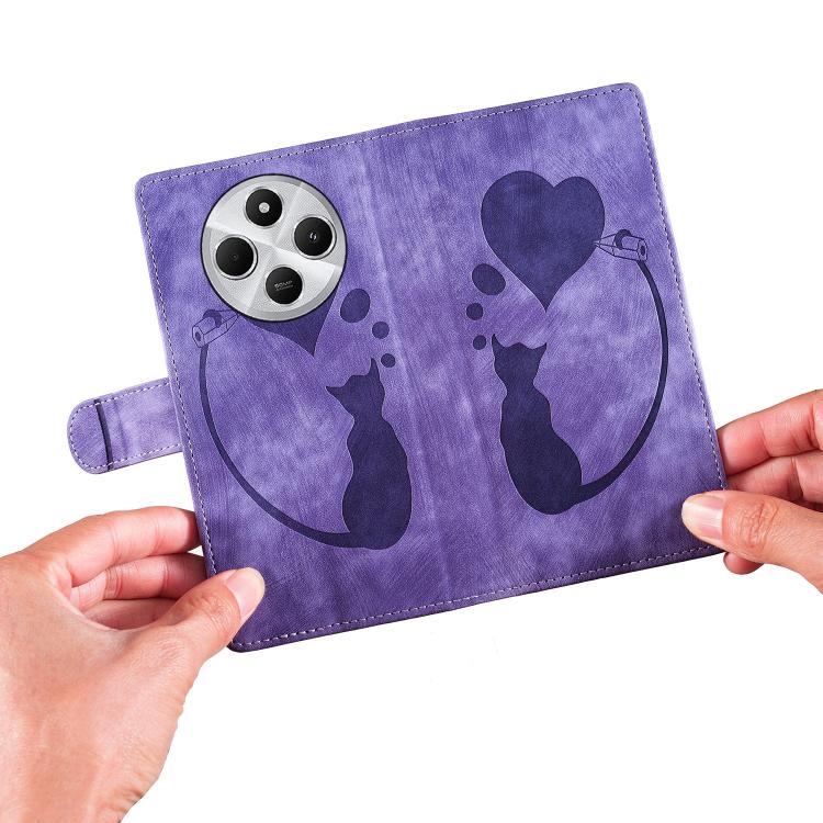 Funda de Cuero con Relieve de Gato y Corazón para Redmi A4 5G (Morado)