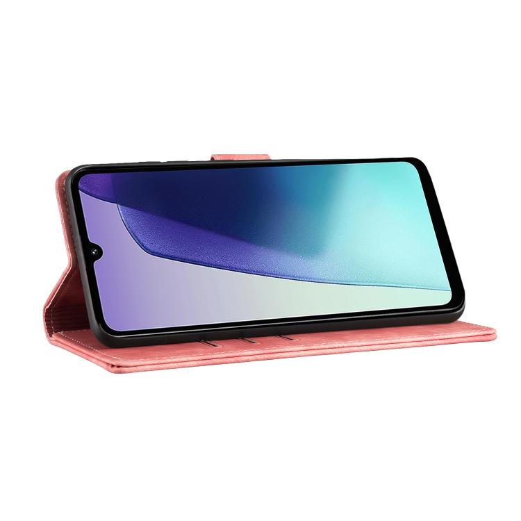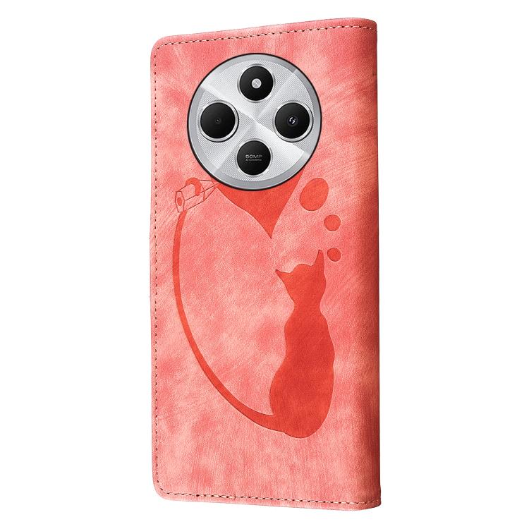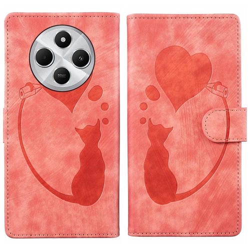 Funda de Cuero con Relieve de Gato y Corazón para Redmi A4 5G (Naranja)