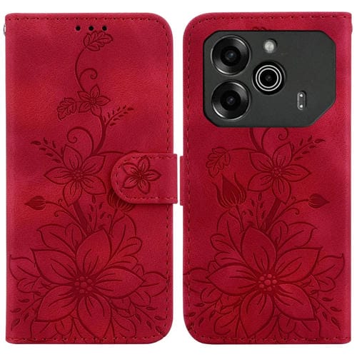 Funda de Cuero con Relieve de Lirio para Tecno Pova 6 5G y 6 Pro 5G (Roja)