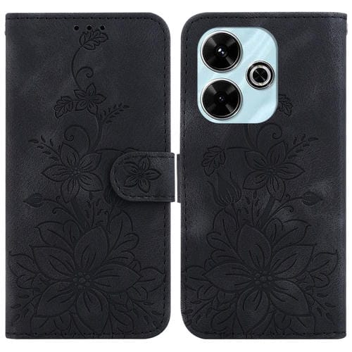 Funda de Cuero con Relieve de Lirio para Xiaomi Redmi 13 4G (Negra)