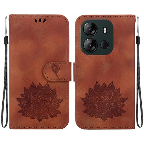 Funda de Cuero con Relieve de Loto para Tecno Spark Go 2023 y Pop 7 Pro (Marrón)
