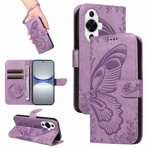 Funda de Cuero con Relieve Mariposa en Forma Cola de Golondrina para Huawei Nova 11 5G/12S 4G (Morado)