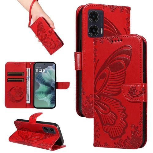 Funda de Cuero con Relieve de Mariposa para Motorola Moto G35 (Rojo)