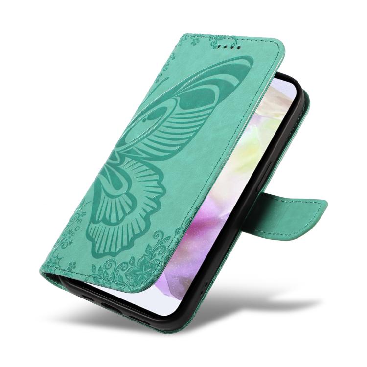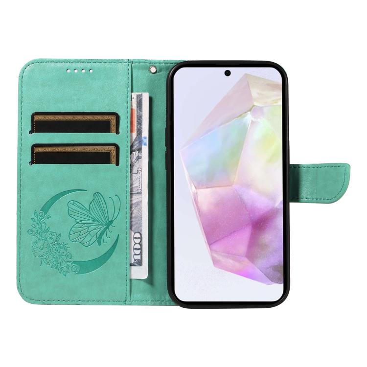 Funda de cuero con relieve de mariposa para Samsung Galaxy A36 5G / M56 5G (verde)