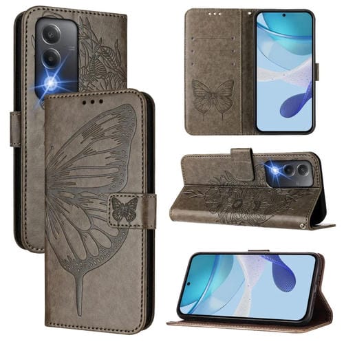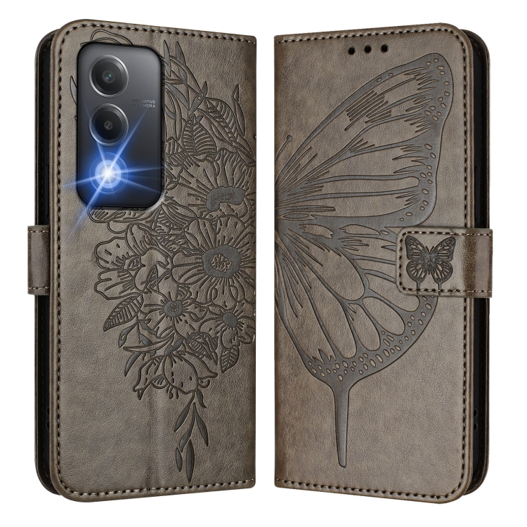 Funda de Cuero con Diseño de Mariposa En Relieve para Oppo K12X 5G (Gris)