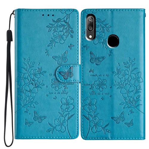Funda de Cuero con Relieve Mariposa y Flor para Huawei Y7 2019 (Azul)