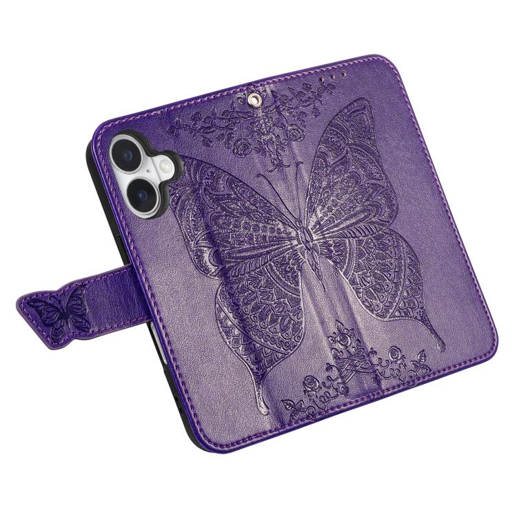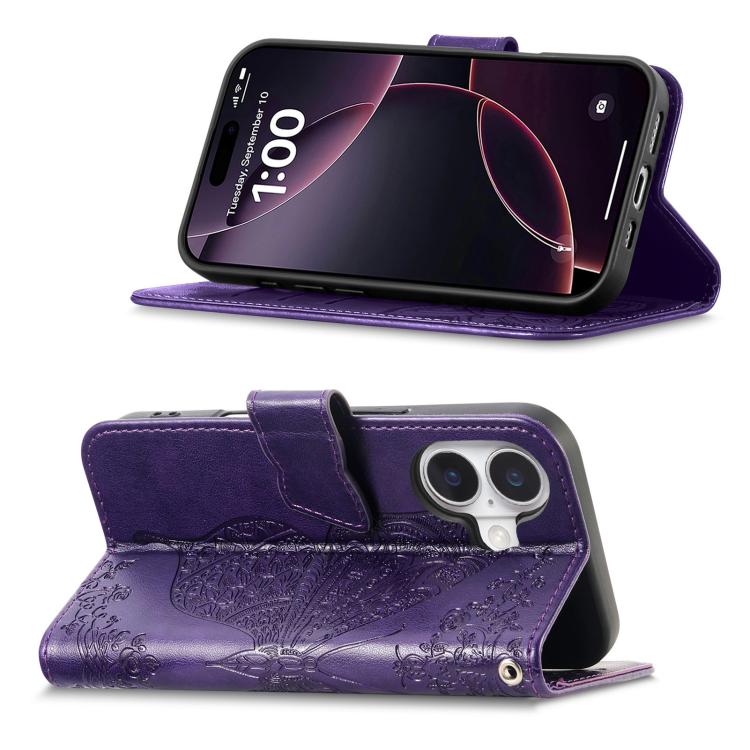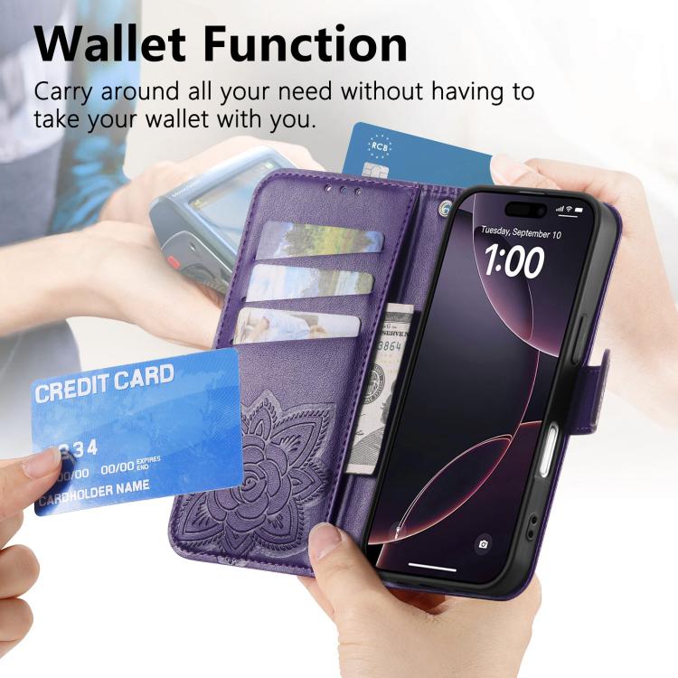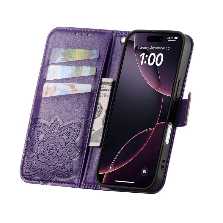 Funda de cuero con relieve de mariposa y flor para iPhone 17 (morado)