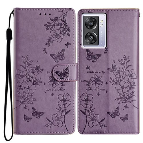 Funda de Cuero con Relieve de Mariposa y Flor para Oppo A57 4G/5G/A77 5G (Morado)